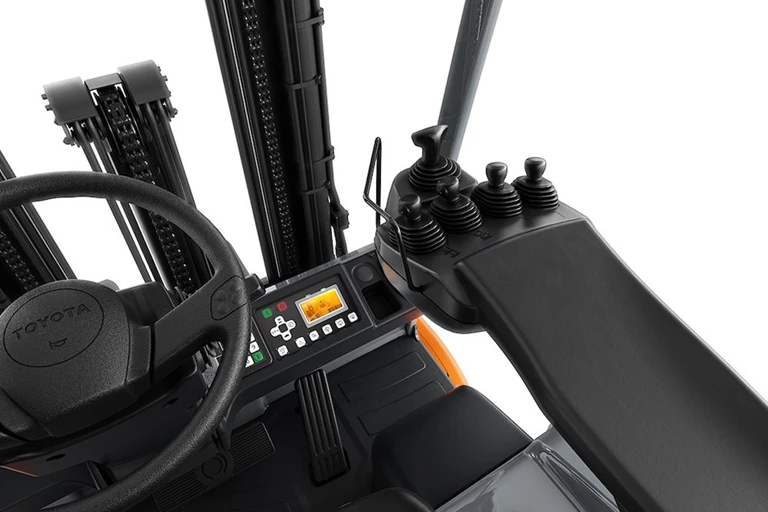Comfortable driving position with excellent view through the mast with low dashboard including integrated display with vital driver information.